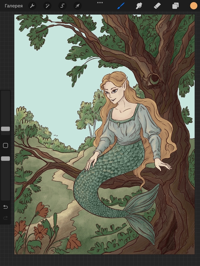 В пятый день челленджа я ужасно себя чувствовала из-за своей метеозависимости, а потому всерьез подумывала пропустить день челленджа. Но к вечеру мне стало полегче и я взяла себя в руки и нарисовала русалку)