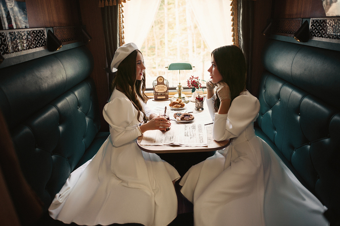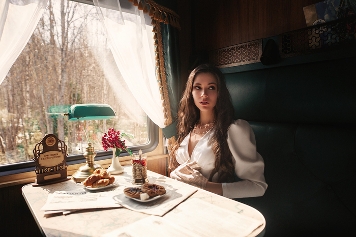 Вагон-ресторан был прекрасен. В целом за час можно везде сфоткаться. А если пока поезд не тронулся, забронить место в фото-купе (платно) то можно получить фотки и в накидках-костюмах.