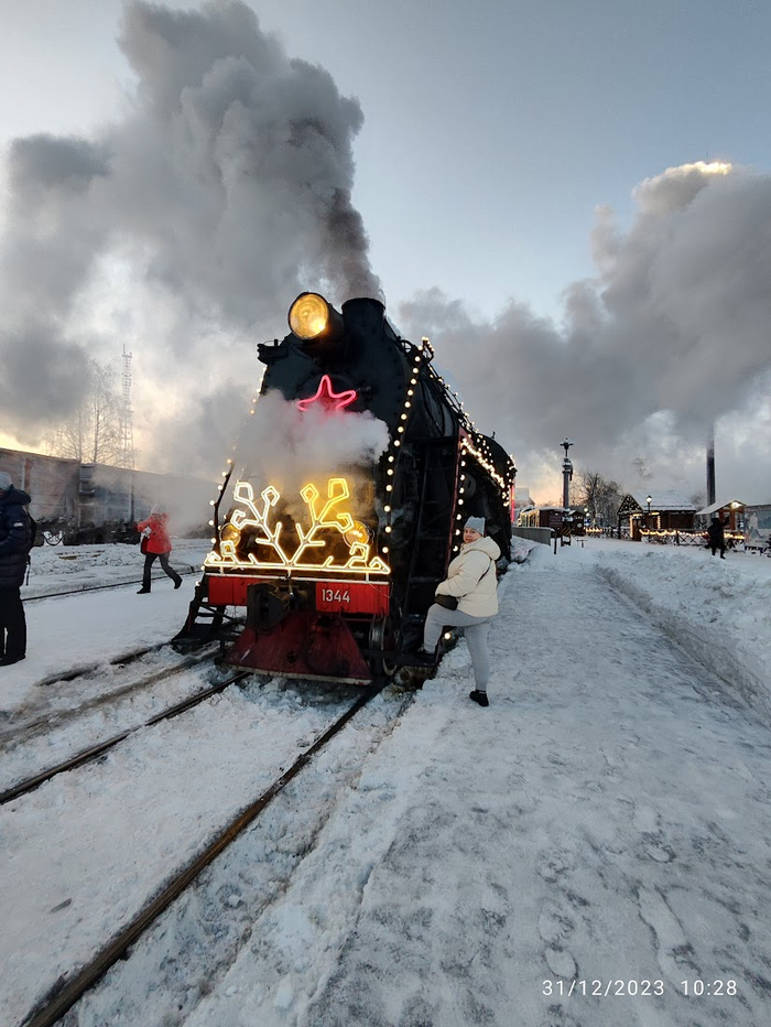 Потом мы увидели, как ребята попросили машиниста пустить их потянуть за гудок-и машинист дал)) Но это скорее магия новогоднего вечера.