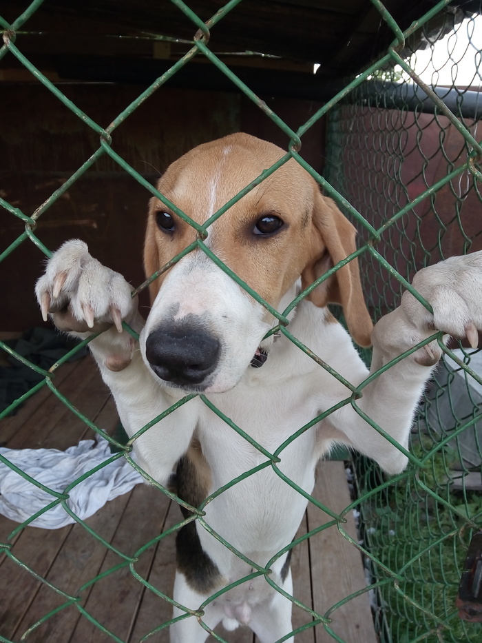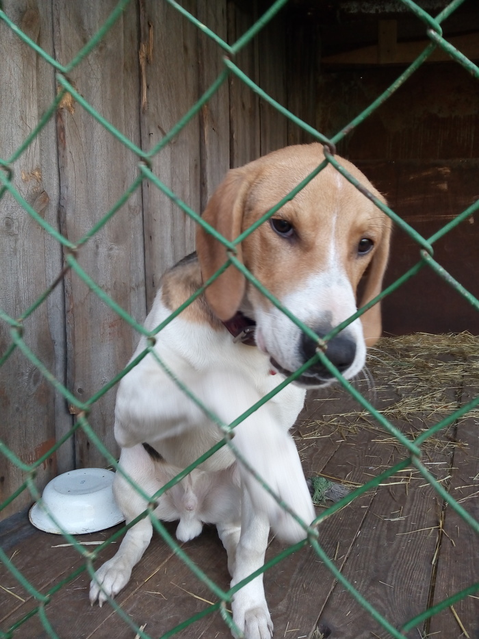 Почти три года назад мы с женой выбирали себе дом с участком в Марийской республике. Возвращаясь вечерним временем, мы заехали на автозаправку. В один момент под свет фонарей вышло что-то худое, но по облику явно благородное. Вышло, осмотрелось и стало вьозвращаться к себе во тьму. Кивнув супруге в сторону Явления, я подъехал к нему поближе. Это оказалась собака неизвестной мне породы, которую мы позже опознали как русская пегая гончая. Жена поднимала на меня глаза полные слез с мольбой хотя бы временно ее приютить. Мы жили тогда в однокомнатной квартире, но, в общем-то, я не был чужд различным авантюрам, так что собака была погружена в машину и повезена в Казань.