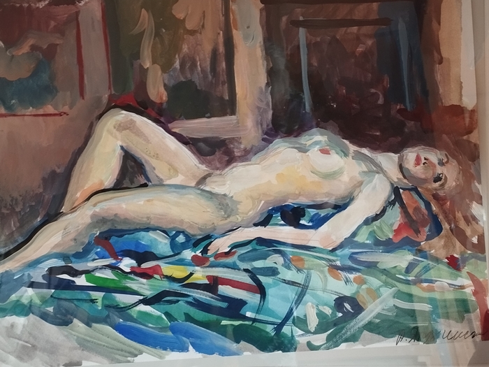Автор картины - Соломон Боим, советский художник, акварелист и график. Во время работы над этой картиной работал в газете «Красный балтийский флот» в Ленинграде.