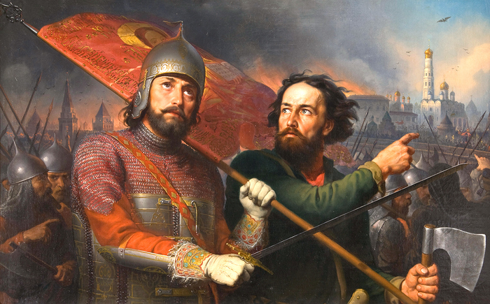 Картина московского художника Георгия Константиновича Савицкого, старшего сына и ученика знаменитого художника-передвижника Константина Савицкого. Георгий Константинович родился в Санкт-Петербурге в 1887 году, но прославился и провел большую часть карьеры в Москве. Известен в первую очередь как художник-баталист и мастер исторической картины.