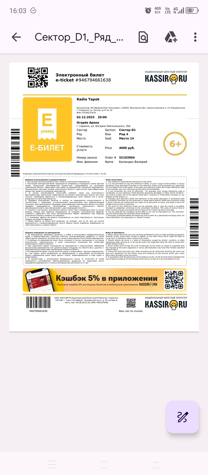 Сходили с супругой на концерт радио тапка в Саранске, причём впервые и ехали с Ульяновской области.