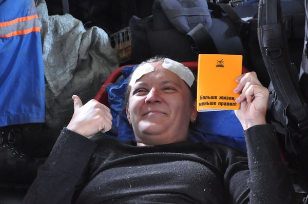 «Было принято решение о незамедлительной отправке к месту вертолета Ми-8 со спасателями и медиками. Пострадавшую обнаружили под скалой на берегу реки Китой. Она была в сознании. Врач, входящий в состав группы, перевязал ее раны, поставил обезболивающий препарат. Областными спасателями, имеющими большой опыт в проведении поисково-спасательных работ в горной местности, туристку на носилках пронесли через тайгу около километра, подняли к вертолету и доставили в город Иркутск. Там ее встречали врачи медицины катастроф».