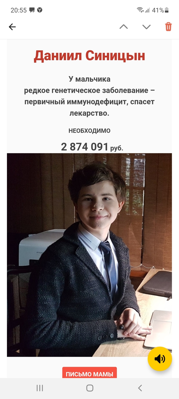Во-вторых, так как речь идёт о моих деньгах и возможном обмане меня РусФондом (автор всё-таки указал тег ОБМАН), то я решил проверить информацию и выяснилось, что сбор денег для Арсения с таким диагнозом действительно был (по крайней мере я отправлял деньги на его лечение)!