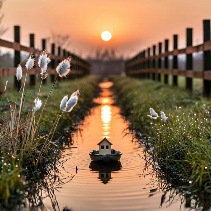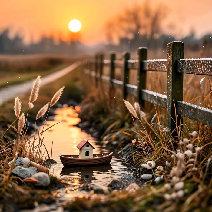 [моё] Арты нейросетей Корабль Ручей Пейзаж Осень Длиннопост