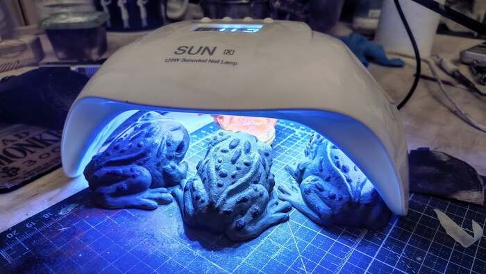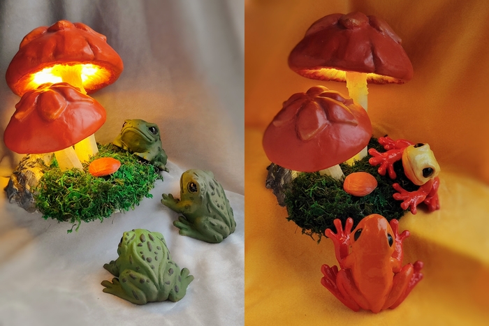 Уже 3 год шью лягушек и обожаю этот процесс. Парень же, наблюдая за всем этим лягушачьим безумием, на днях решил меня удивить и сделал целую кучу скульптурок жаб и лягух.