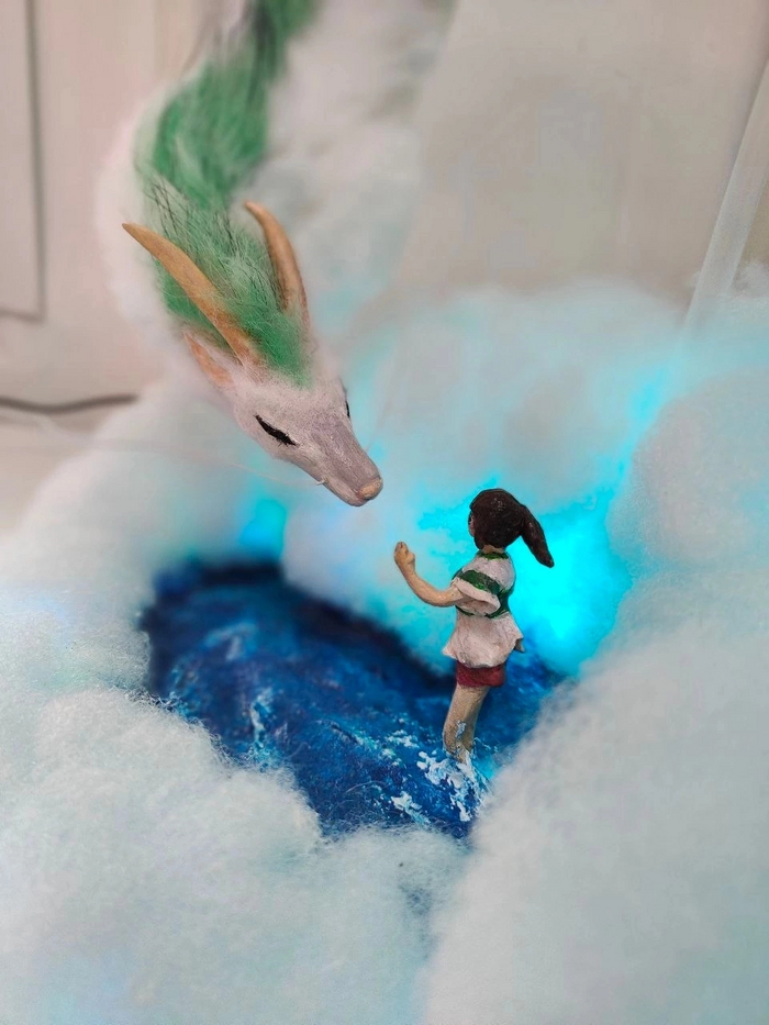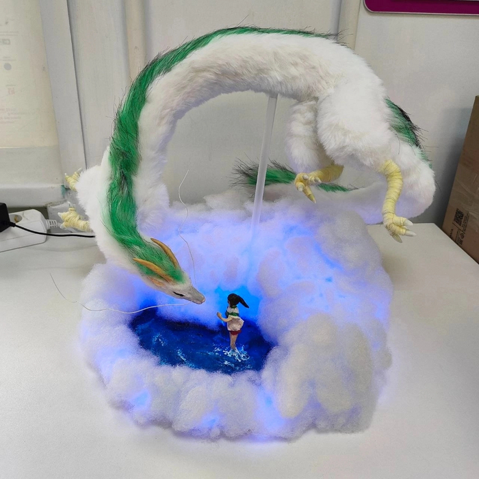 Ночник с Драконом Хаку и Тихиро полностью ручной работы, время изготовления месяц =)