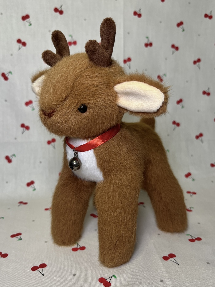 Милый лисёнок в красной новогодней шапочке.