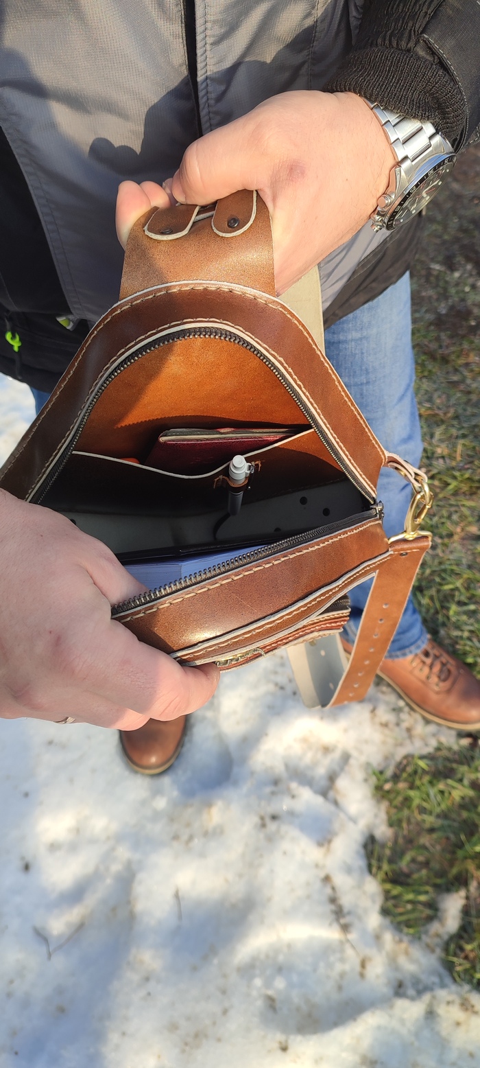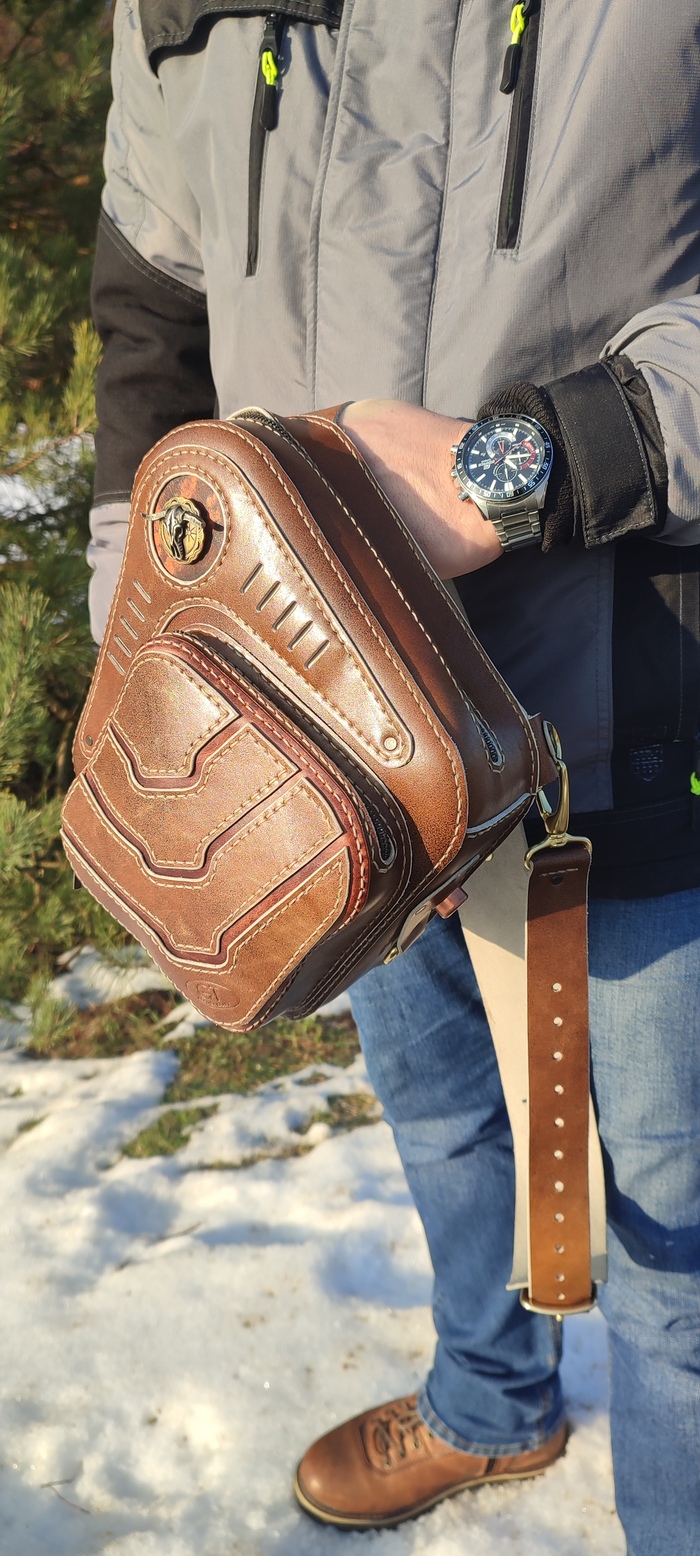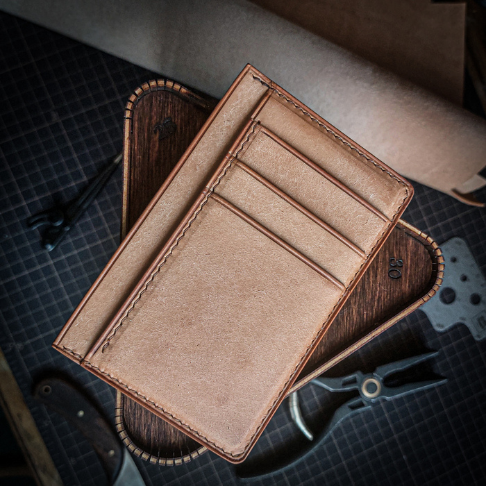Кожан использовал в толщине 1,6-1,8 мм., фурнитура латунь, нить ноунейм, толщиной 1 мм., шаг ручного шва 6 мм.