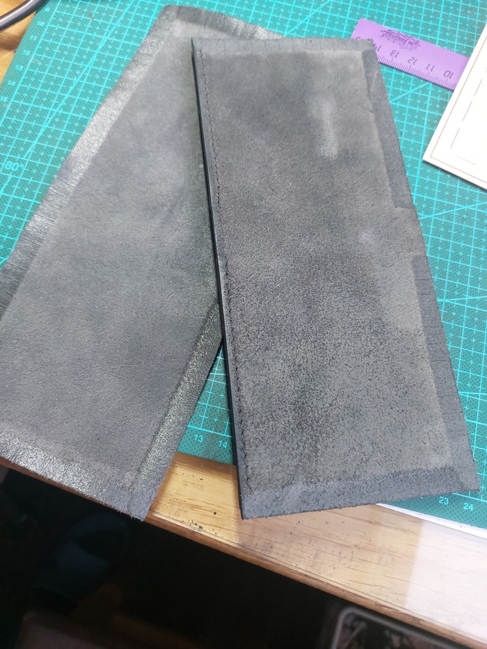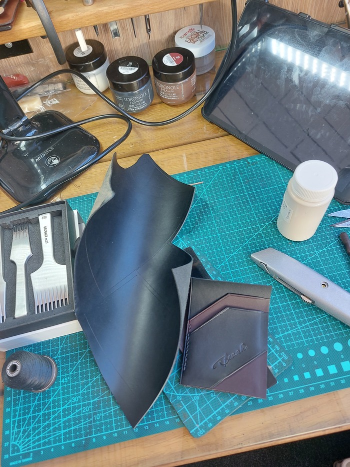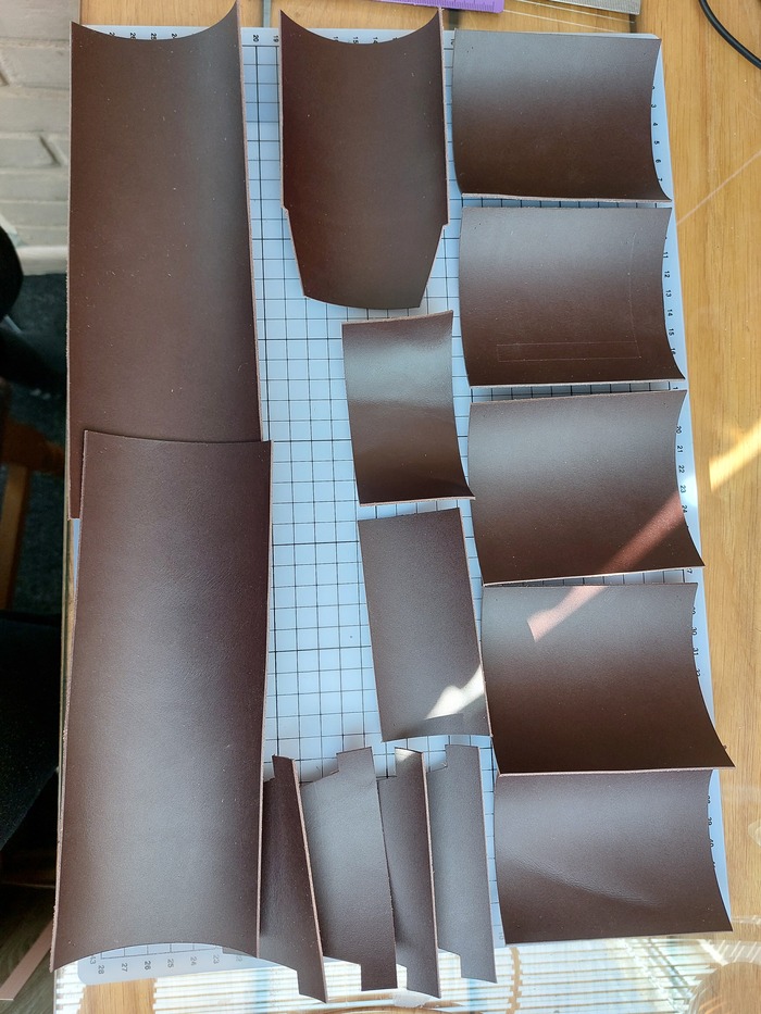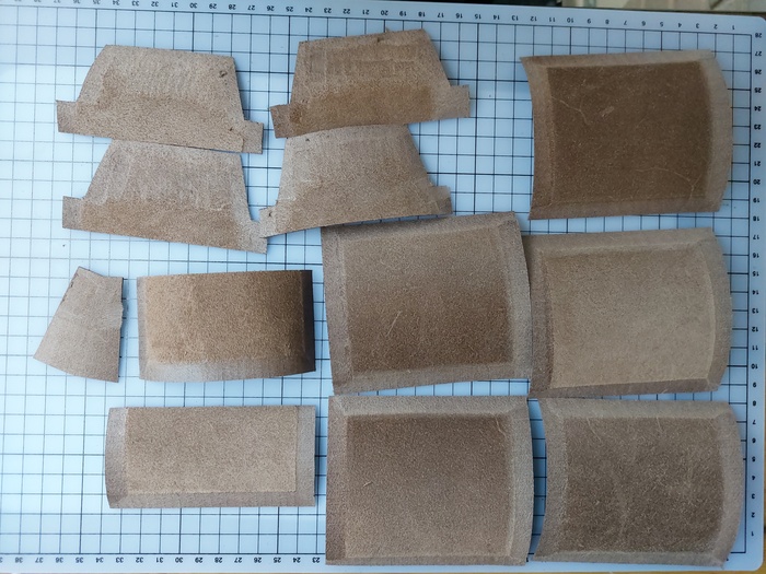 нарезаю заготовки по выкройке, шерфую (в тех мечтах где считаю нужным) и склеиваю "бутерброды", после чего приклеиваю их к основной детали