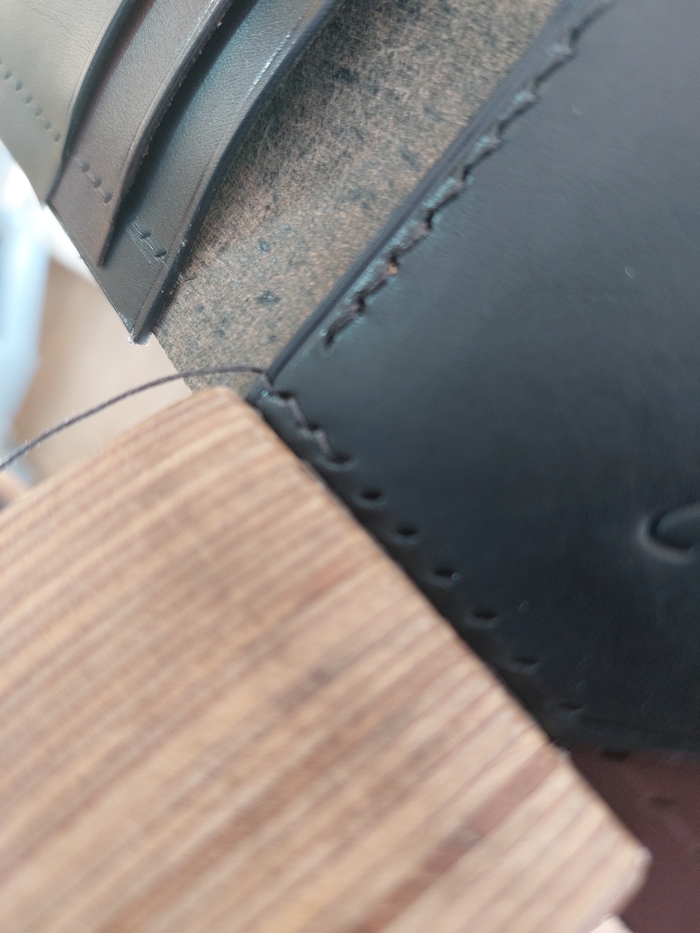 В работе использовалась кожа растительного дубления, 1.2-1.4 мм, VACCHETTA LISCIA, ARTIGIANO DEL CUOIO, Италия, нить WEIXIN 0.35мм