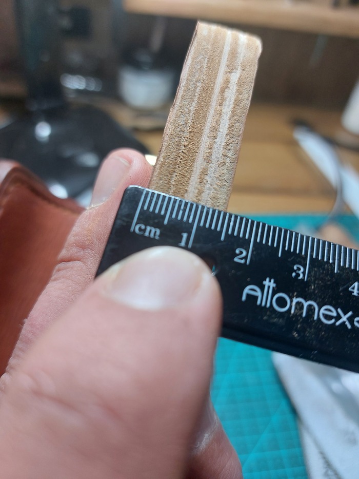 Сам крюк состоит из 4 слоев ременной кожи, общей толщиной 15мм в торце.