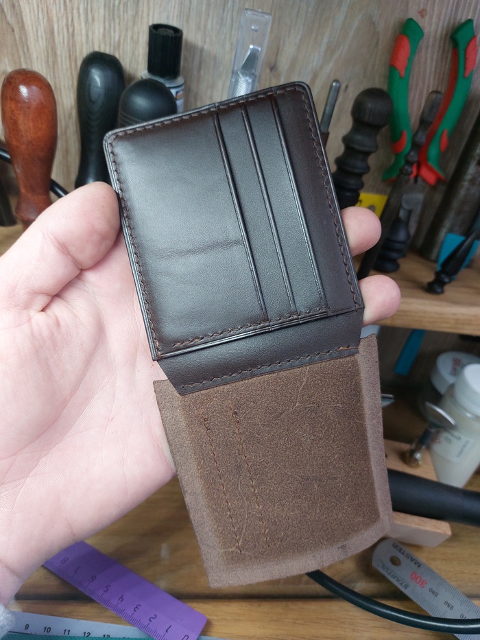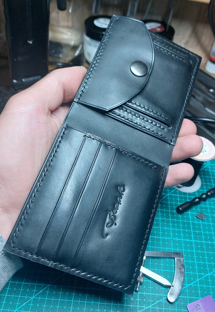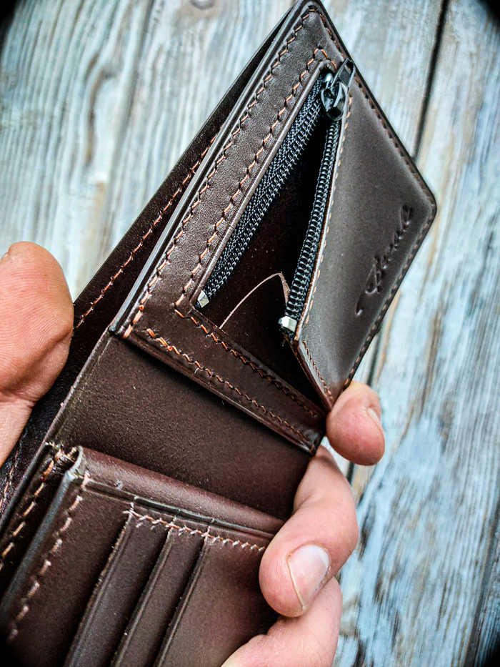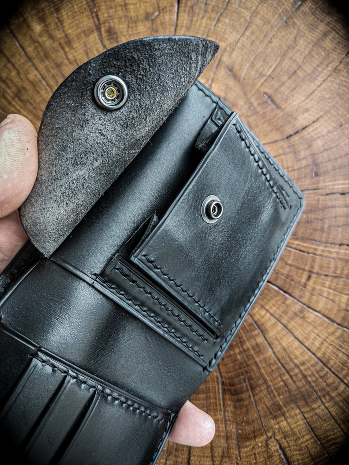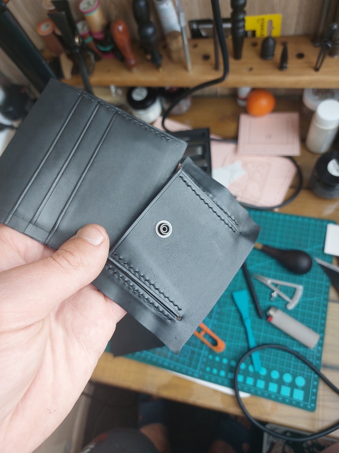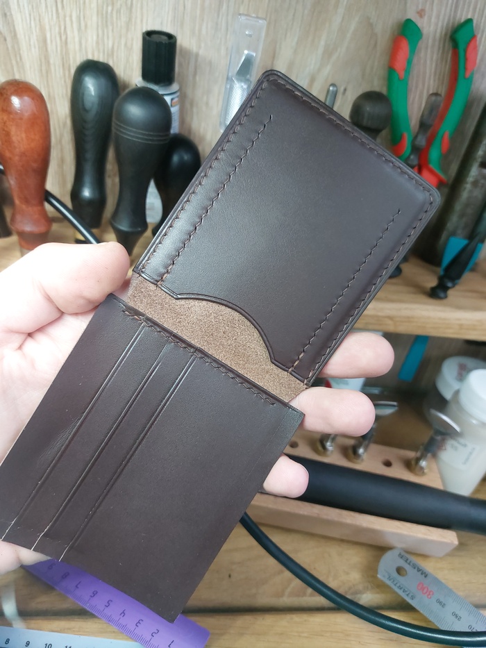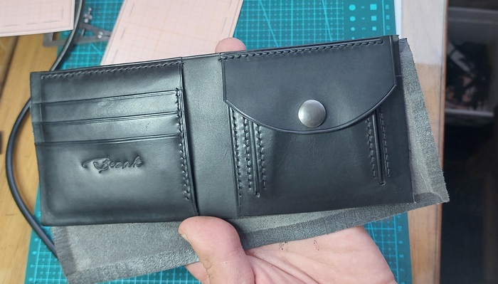 Всем привет. Очередной заказ- бифол с карманом для мелочи. Клиент скинул мне фото своего старого портмоне, попросил повторить функционал, с некоторым поправками