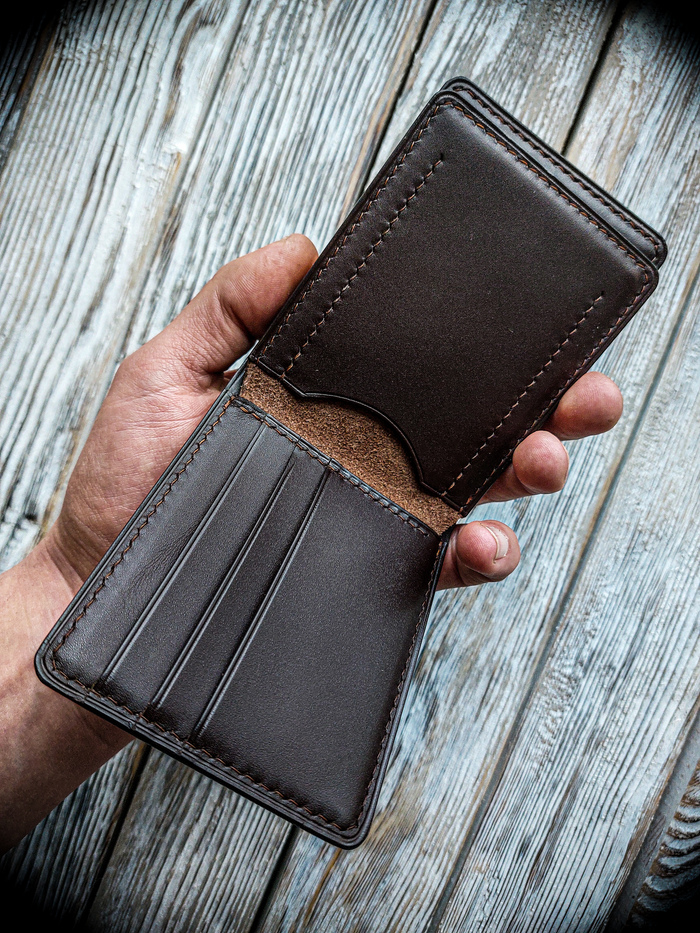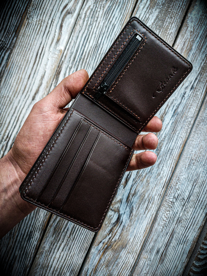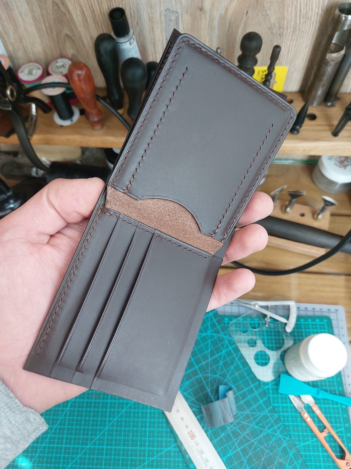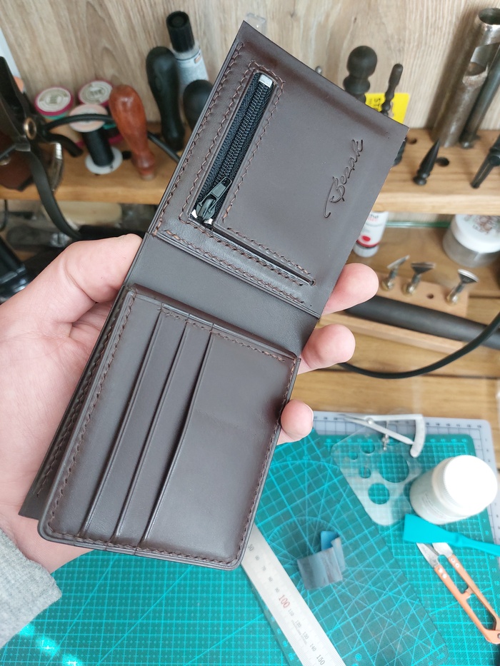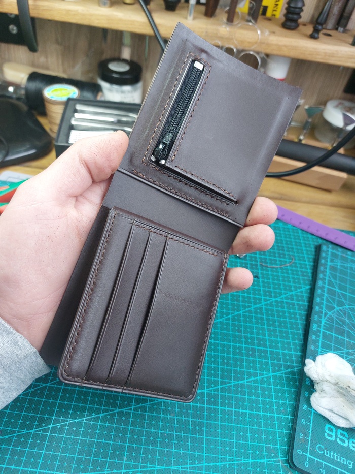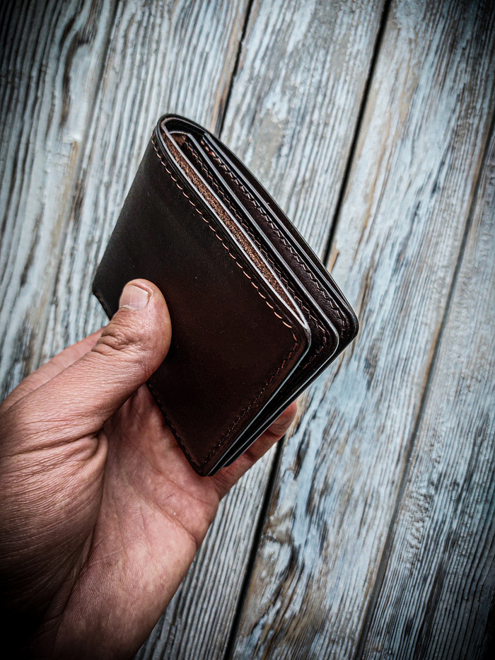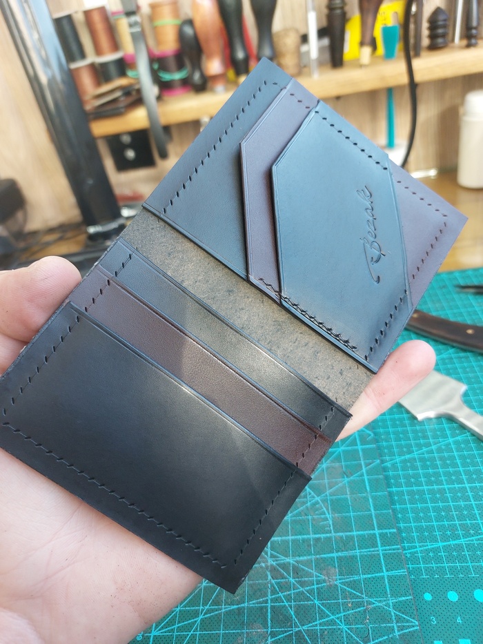 Всем привет. Очередной заказ- бифол с карманом для мелочи. Клиент скинул мне фото своего старого портмоне, попросил повторить функционал, с некоторым поправками