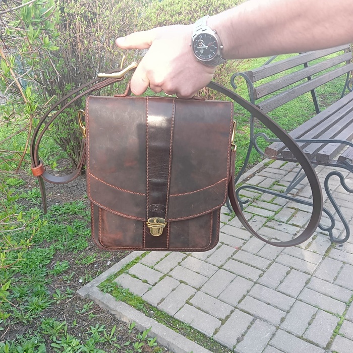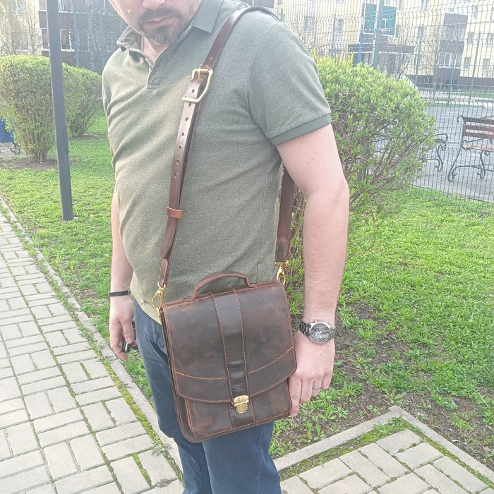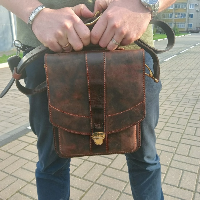 Буквально вчера закончил одну интересную мужскую сумку, по выкройке одного мастера.