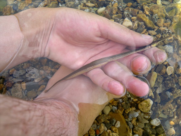 Чтобы вы не мучились догадками, что же это за кракозябра, мы сразу дадим вам ответ. Это радужная рыба-игла — прямой родственник морских игл и коньков. Впервые эту рыбку обнаружили где-то в предгорьях Гималаев, на границе Бенгалии и Бутана. И не просто в какой-нибудь луже у подножья горы, а на высоте 1500 м над уровнем моря в чистой горной речке!