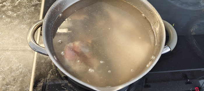 Рыбу промываю и заливаю подсоленной водой. Ставлю варится.