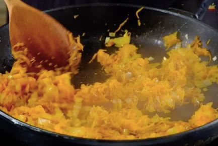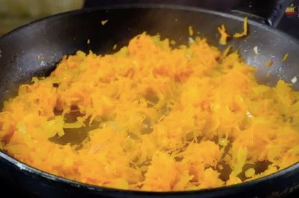 2) Добавить натертую на мелкой терке морковь и жарить до мягкости.