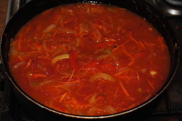 Для маринада берём лук, морковь, сельдерей, сладкий перец, томаты в собственном соку очищенные.Ещё понадобиться соль, сахар, уксус, лавровый лист, чёрный перец горошком, по желанию гвоздика и чеснок.