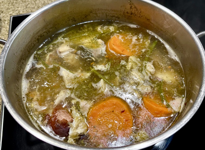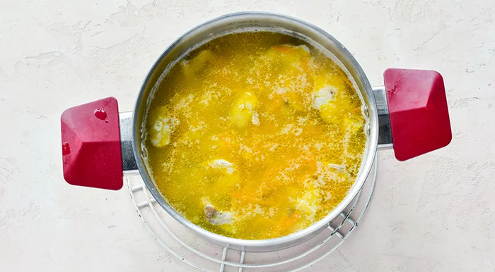 Внимание! Крышкой кастрюлю с бульоном не накрываю. Чтобы избежать помутнения, значит, бульона.