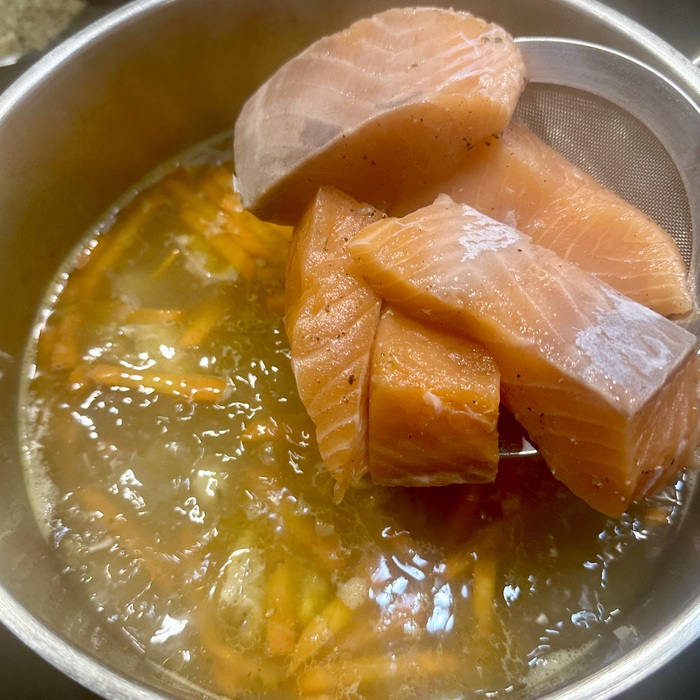 И, повторюсь, я бульон НЕ ВАРЮ! А томлю. Для рыбы достаточно минут 40-45.