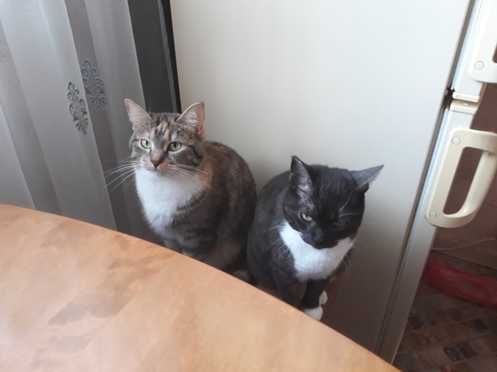 Тема котов неисчерпаема. У меня живут две звезды, обе подобранные с улицы во взрослом возрасте. У черной был сломан хвост, пальцы на лапах, ребра. Досталось ей по жизни. Пёстрая с отмороженными лапами была спасена лютой зимой с канализационного люка. Не дружат ни разу. Бесконечные смертельные бои, хотя уже вместе живут третий год. Ничего не дерут, есть разные когтеточки. Крайне редко могут что-то украсть со стола. Гуляют со мной без поводка в городе. Очеловечились, практически. Понимают все нужные слова и интонации... Греют душу.