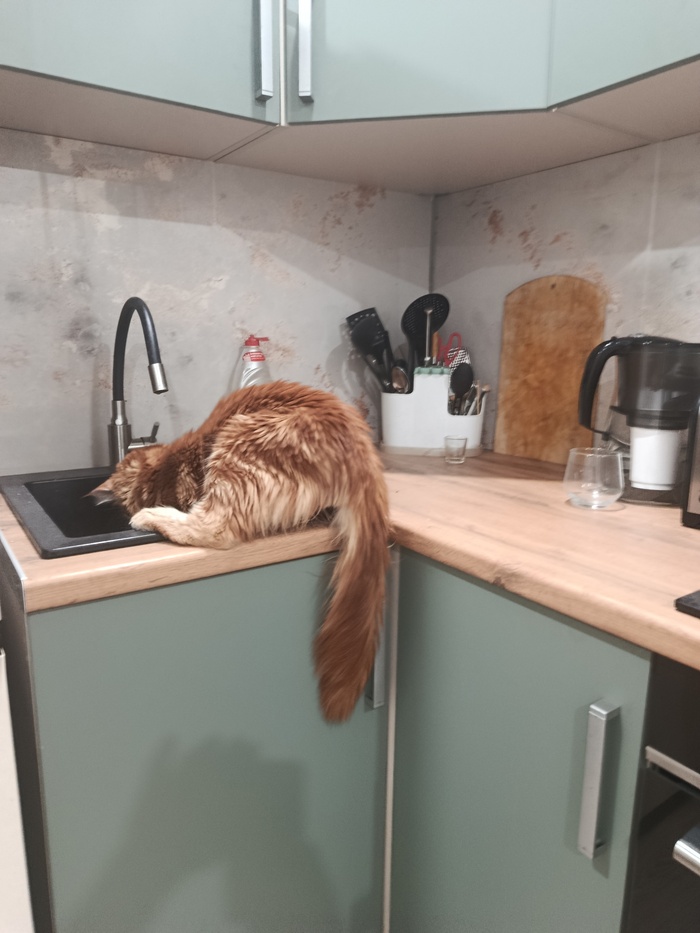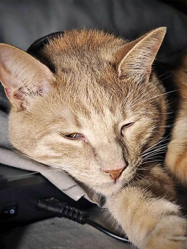 Леонид. Кот чувствует значительно лучше, распушился даже, аппетит хорош. Кот активно пытается избавиться от катетера...Почему-то при помощи носа. Ранка на носу именно потому и образовалась.