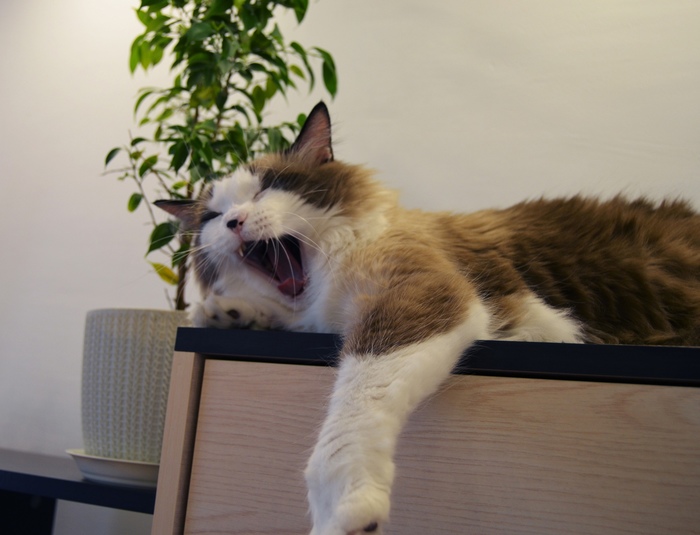 Но пока не об этом, у Тошки (сокращение от Оливер Тошиба) есть особенности. Он не любит прикосновения руками и дает себя гладить исключительно ногами. И ходит постоянно выпрашивает поглаживания.
