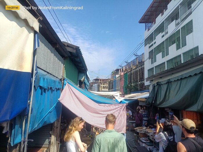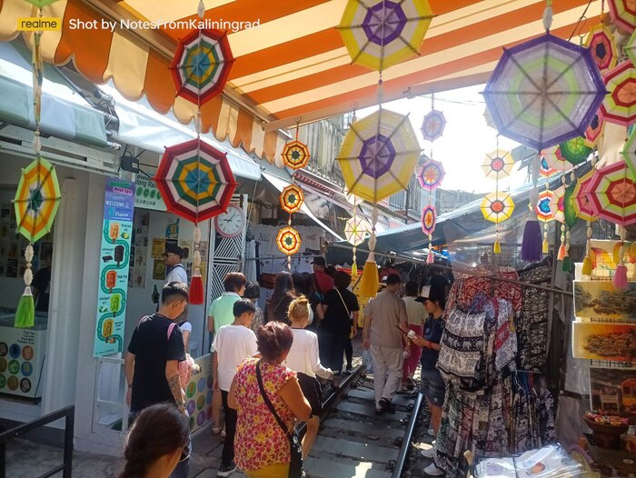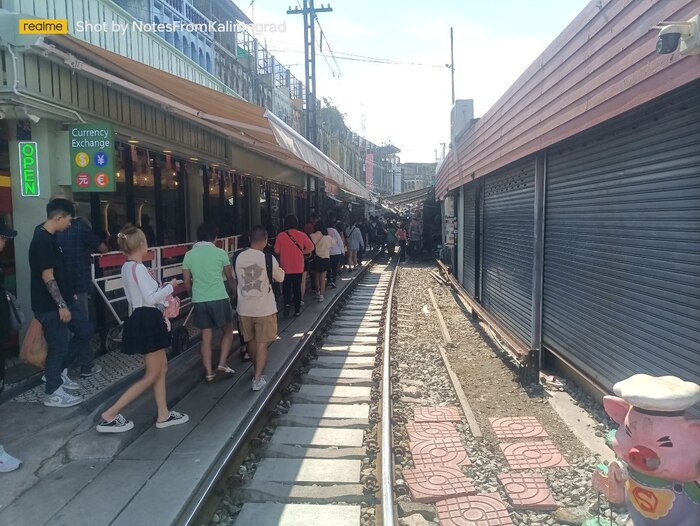 При звуке гудка приближающегося поезда торговцы спешно складывают навесы и убирают прилавки, которые могут оказаться на пути состава. Поезда ходят здесь восемь раз в день, и это зрелище привлекает большое число туристов.