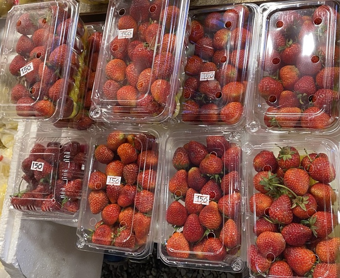 Клубника, спелая,взвешивали 150 бат ≈ 441 руб за 440 гр