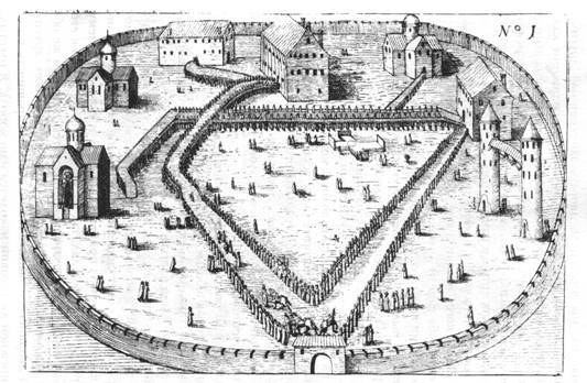 Штрихами показаны утраченные Россией территории по Плюсскому перемирию (1583 г) и Ям-Запольскому миру (1582 г)