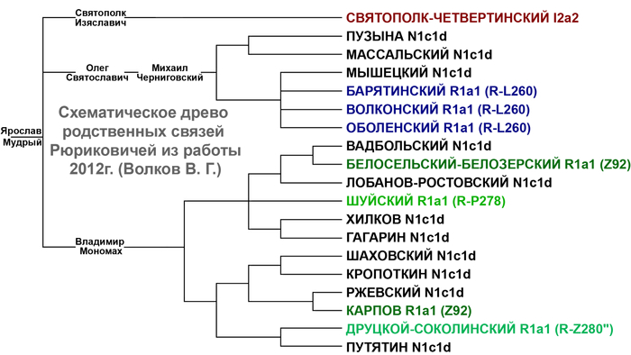 Источник: Жур К.В., Шарко Ф.С., Седов В.В., Добровольская М.В., Волков В.Г., Максимов Н.Г., Сеславин А.Н., Макаров Н.А., Прохорчук Е.Б. Рюриковичи: первый опыт реконструкции генетического облика правящего рода средневековой Руси по данным палеогеномики // Acta Naturae. - 2023. - Т. 15. - №3. - C. 50-65. doi: https://doi.org/10.32607/actanaturae.23425
