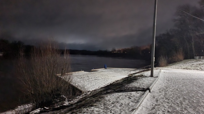 Это не просто пейзаж с видом на декабрьскую Оку. На фото - причал городской пристани, что в лесопарке. Вы что нибудь замечаете здесь? Подсказываю: причал не оборудован перилами. Следует отличать берег реки от вынесенного над водой на несколько метров искусственного сооружения. Почему до сих пор здесь отсутствует ограждение, вопрос всё к той же местной власти.