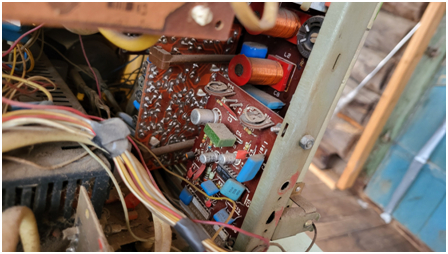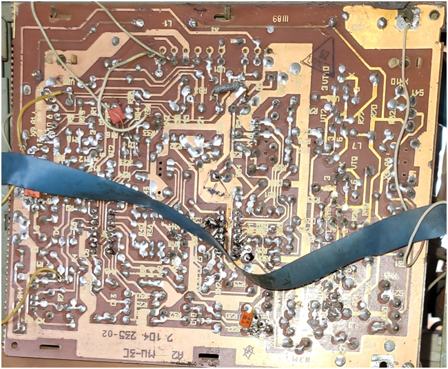Все сигналы, кроме 220В я нашёл сразу. А вот вместо 220В было 180В. Это напряжение идёт с 10-й ноги ТВС-110ПЦ15, как у ТВ так и у монитора, но на выходе строчной развёртки у ТВ 220, а у монитора 180В. Я запустил плату от 3УСЦТ и сравнил напряжения, да на транзисторах видео усилителя 220. Тогда я спросил у своего учителя радиокружка как быть. Он меня успокоил: будет работать и от 180 Вольт. Я так и запустил схему с пониженным напряжением.