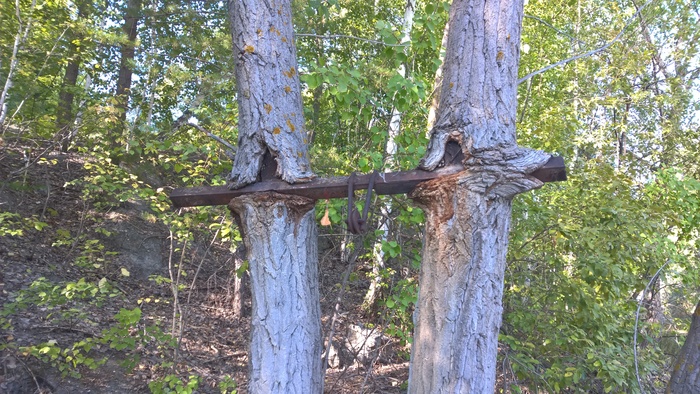 Примерно в километре от лагеря мы нашли вот такое обглоданное дерево со следами жизнедеятельности животных неподалёку.
