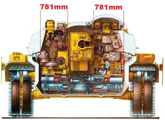 В выпуске журнала «Armor» за ноябрь–декабрь 1983 года Джеральд А. Халберт объясняет, что среднестатистическому танкисту требуется 0,44 кубического метра свободного пространства, чтобы сидеть в защитном костюме NBC. Водителю требуется 0,66 кубического метра, а заряжающему — 0,88 кубического метра. Таким образом, мы знаем, что считалось эргономичным по американским стандартам 1980-х годов.