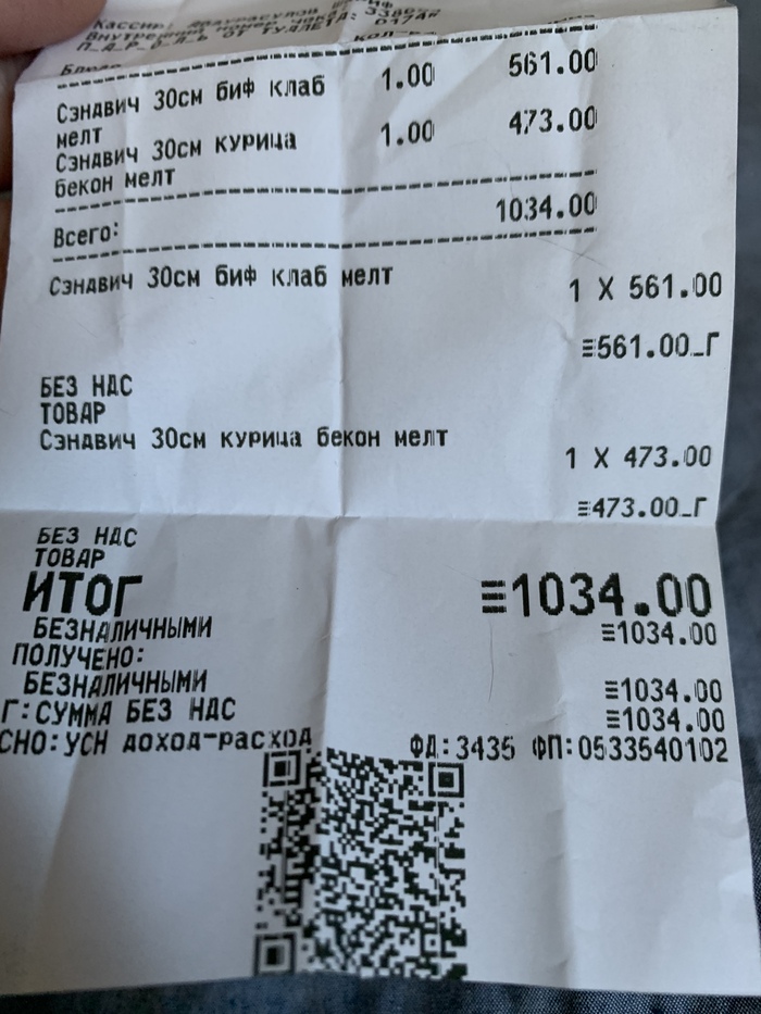 Возжелалось мне нынче позавтракать сабом из Subway, раз уж Макдаки и иже с ними нас покинули. Идти влом - захожу в Яндекс.Еду, смотрю, чо как. Бля, думаю, чо ж пиздец как дорого-то сабы стали стоить, да доставка еще, ваще жесть. Это, кстати, скрин с вот сейчас, а в 14 часов биф клаб мелт стоил 695, я четко это помню, отметила в голове, что почти 700.