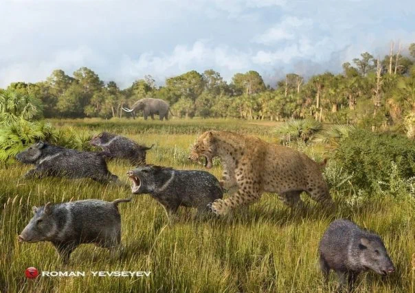 Саблезубый котик охотится на саблезубых свиней. Дикая природа удивительна!
