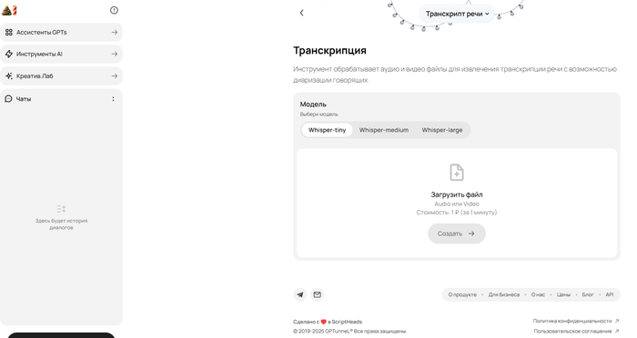 GPTunneL — загружаете аудио/видео и быстро получаете текст с опциональной диаризацией в браузере.