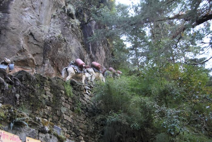Я пропустил, что же мы с собой взяли, т.е. наша снаряга. Так как мы летели Аэрофлотом через Дели, а там багаж был платный, мы решили обойтись ручной кладью. Всего у нас было 2 рюкзака Deuter SpeedLight 25L и 35L, С собой мы взяли 2 спальника, двое штанов на ветер/дождь, по комплекту термухи, куртки мембранные по одной, ну и личные вещи. Еще была солнечная панелька, пауэрбанк на 20АЧ, фотик и термоса. Вес поклажи без воды были; 10 кг у меня и 5 кг у жены. Соответственно несли все сами, гида тоже не было. Ну там и заблудится сложно.
