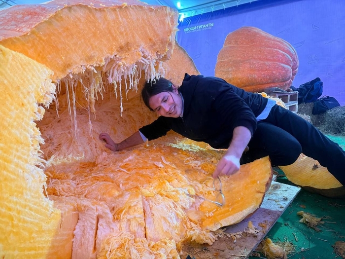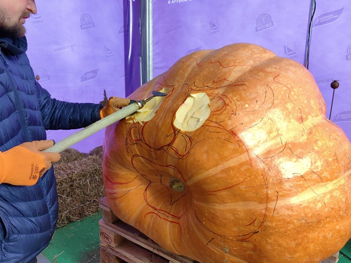 Размышления над интересным применением гигантских тыкв преследуют меня давно. Для меня интересное применение – это не съесть целую тыкву в одиночку и даже не огромной компанией. Соответственно, раздача по кускам и варка огромного супа тоже туда не входят. Как ни странно, а может очень странно, но для меня весь процесс и результат воспринимаются как творчество. Вот и применение этому всему я ищу творческое и весьма неоднозначное. Если с выставкой всё понятно, то вот финал всегда может быть разным. Если раньше тыквы раздавали по кускам, чему я был не особо доволен, то в этот раз раздачи не было, а значит можно было придумать чего-нибудь эдакое. В список идей входит взрыв тыквы, заплыв на тыкве и резьба по тыкве, он же карвинг. Вообще, заплыв на тыкве уже несколько раз реализован у нас в стране. Вот, например, публикация на пикабу: Круиз на Кисаморе.