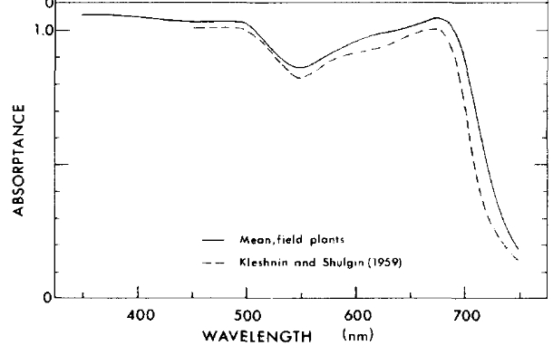 Ещё мы помним, что свет также поглощается пигментами, которые работают в определённом диапазоне цветов - спектре. Но откуда человечество об этом узнало? Естественно, от инопланетян с помощью учёных. Какие-то исследования велись аж с конца 19 века (даже Тимирязев что-то публиковал), но по-настоящему знаковой, которая обобщила имевшиеся исследования и сняла вагоны с тормозов, стала работа Кита МакКри в начале 1970-х. Та самая работа, в результатах которой был получен график эффективности поглощённого фотона в процессе фотосинтеза: МакКри светил светом, считал поглощенные фотоны и количество уменьшившегося СО₂, что, как мы только что узнали, является характерным признаком фотосинтеза.