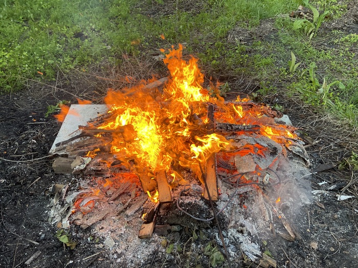 Потом просверлил отверстия в желтых горбах под литники и соединил форму воедино. Немного поискал алюминиевый лом и дрова. Или у кого муфельная печь, либо горн, это конечно ещё лучше. Но у меня было так: