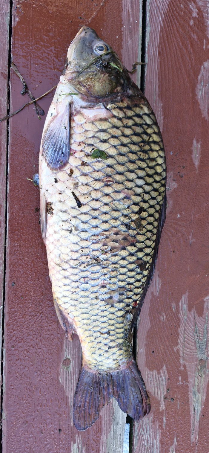 Сходили с утра проведать любимый слив, летом там не клюет, а сейчас рыба просыпается потихоньку. Не ожидала, что клюнет карп)