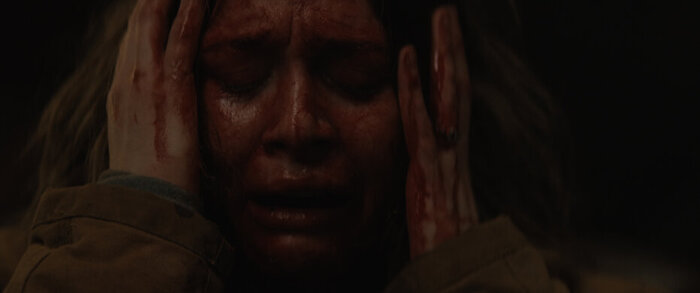 С первых кадров показывают напуганную и перепачканную кровью девушку, явно убегающую от кого-то.