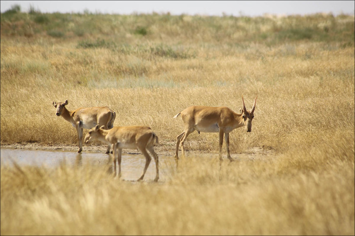 Лисицы пьют осторожно. Волки и орлы уверенно. Барсук делает всё смешно. И так далее. Тут в ассортименте безумные ежи, суслики, хорьки и ещё много кто. Кстати, да. Суслики копают норы, в которых сайгак может повредить ногу. Понятно, что такой почти сразу становится завтраком волка, но иногда сотрудники успевают помочь при переломе или вывихе. Например, инспектор Эвр увидел как-то в том году сайгака на трёх ногах и оказал ему первую помощь. И заодно дал кличку. Жив ли Штатив до сих пор, никто не знает, потому что либо нога зажила, либо его съели, а запомнить в лицо их всех сложно.