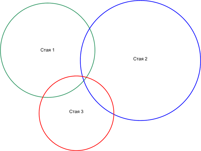 6. Теперь экологи забоятся о численности сайгаков и обнаруживают, что их основной враг — волки. И решают уменьшить поголовье волков. Представьте, что стаю 2 просто уничтожают. Стая 1 тут же перестаёт себя ограничивать в радиусе преследования, и сайгаки обнаруживают, что убежать не получается. Финита.