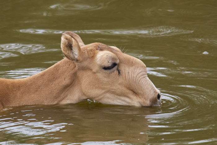 Сайга, портрет самочки сайгака, Калмыкия, заповедник Черные Земли, август 2021. Жара.