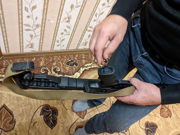 И тут понеслось. Это, я вам скажу, покруче чем бомбу подорвать. "Саня, ты чё в подсобке сидишь? Неси оружие, женщина выбирать будет!" - Саня нёсся с коробками в руках, захватив скучавших в подсобке. На прилавок метали всё, включая автомат 73-го года. Гора вокруг росла, мы складывали и раскладывали, оценивали вес и длину ствола, вскидывались и брали следующее. Кто-то увлечённо лупил по кнопке молотком - неразработанный приклад складываться не хотел. "Да вы только посмотрите, как удобно брать в руку!" - ко мне пододвигали коробку. Случайные покупатели ошарашенно тормозили на входе и оставались посмотреть на праздник.